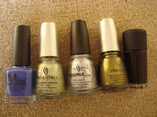 (L-R) Misa Throw me something purple please, China Glaze L8R G8TR, China Glaze Platinum Pieces, Mac Nocturnelle