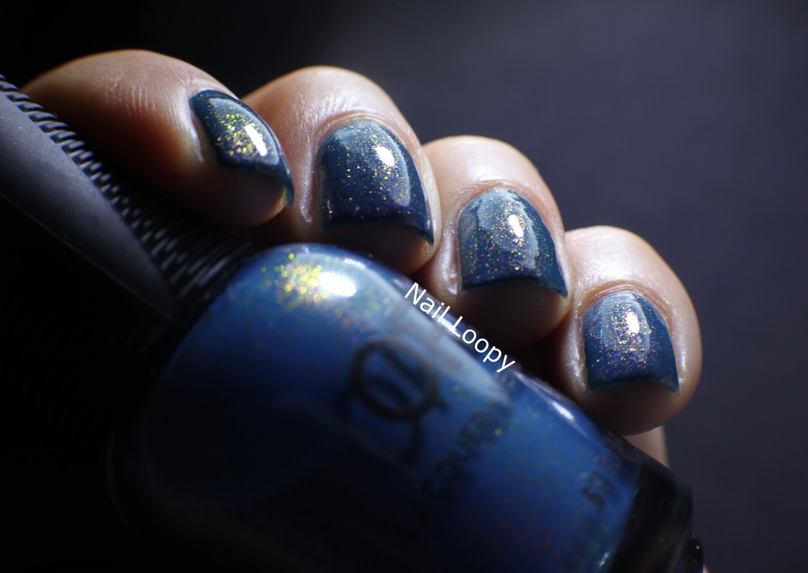 It's a gorgeous blue with duochrome shimmer/flakes in it! Such a gorgeous combination!